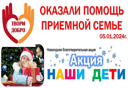 В рамках республиканской благотворительной акции «Наши дети» Лизе и Саше, которые воспитываются в приёмной семье, в декабре 2023 года были вручены новогодние подарки и приглашения на детские утренники в Гродненский областной драматический театр и в Дом культуры УП «Цветлит».