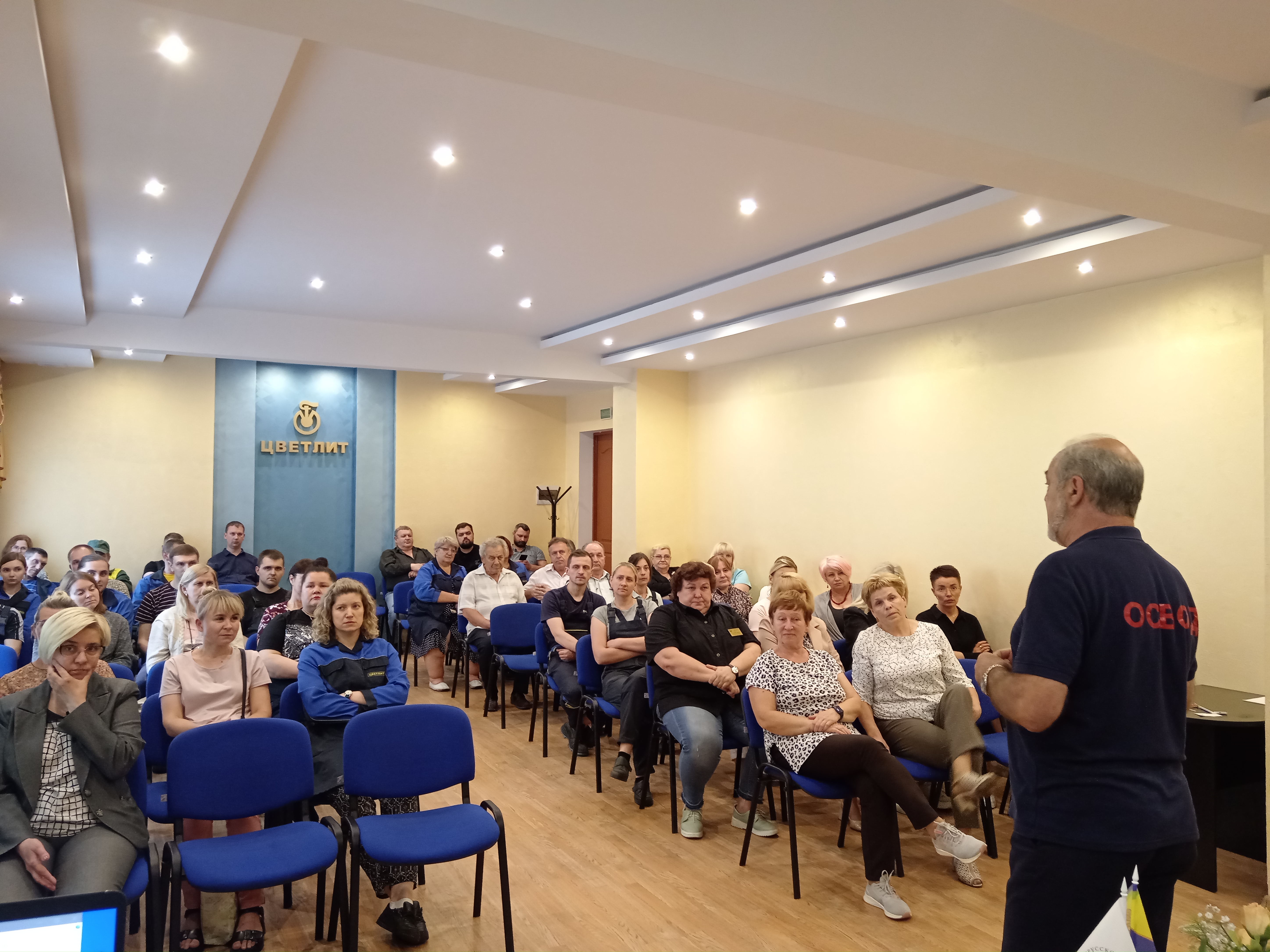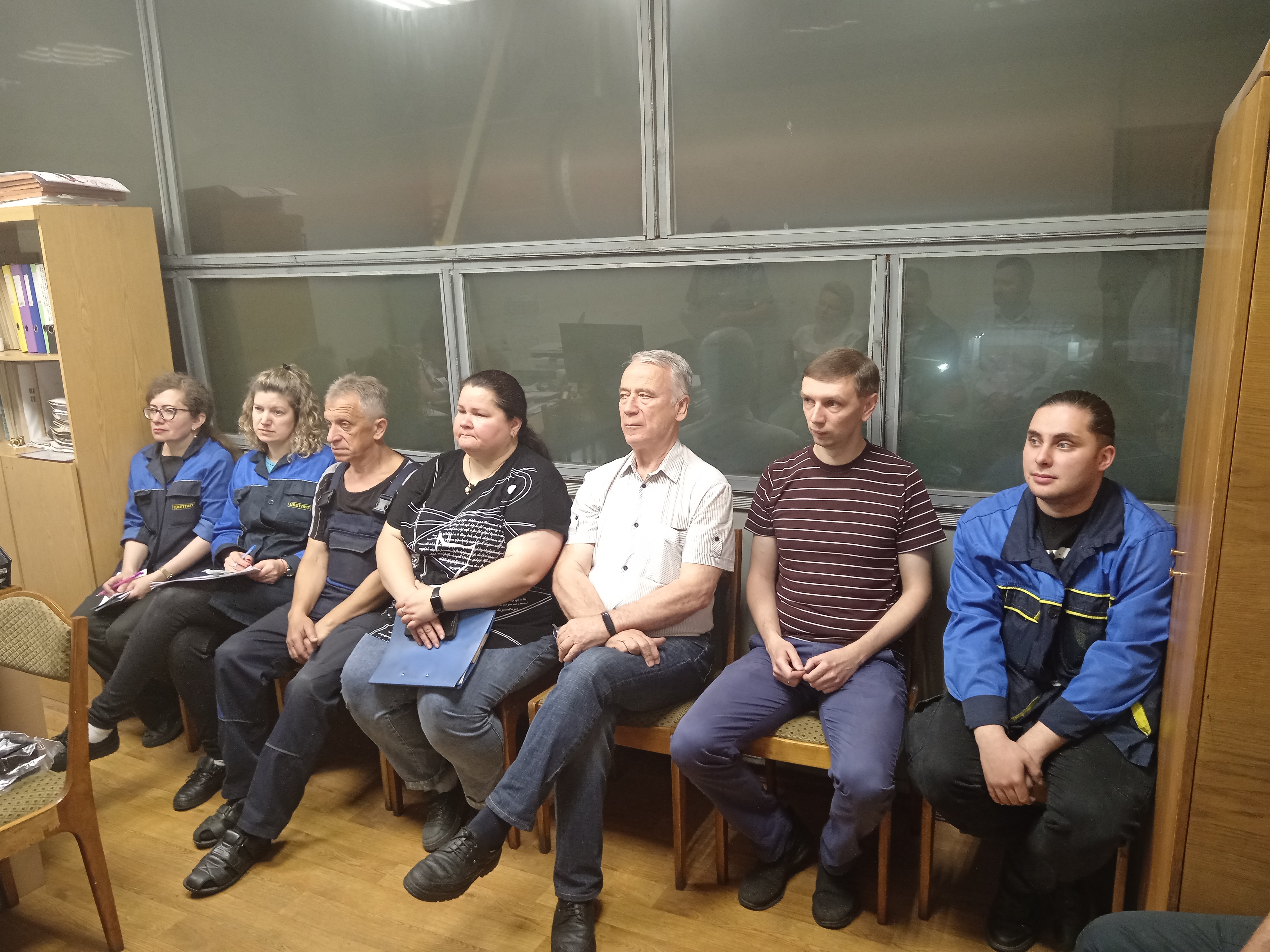 В зале для проведения конференций состоялась учёба общественных инспекторов по охране труда и рабочих механосборочного цеха.