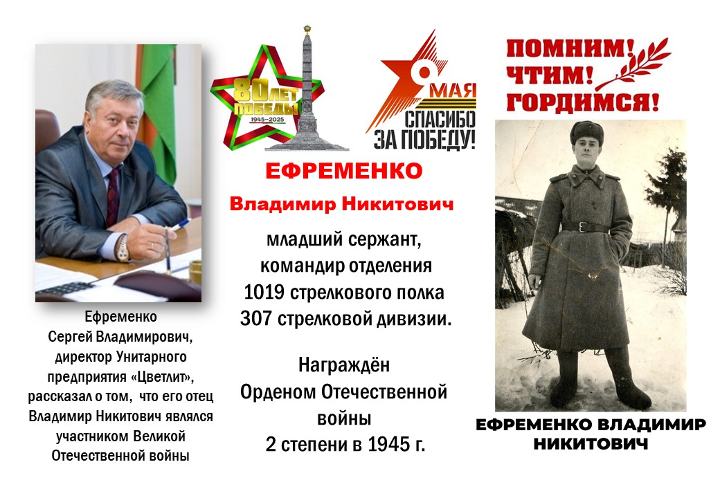 Cообщаем, что директор производственного унитарного предприятия «Цветлит» — Сергей Владимирович Ефременко — удостоен звания Лауреата Государственной бизнес-премии «Руководитель года. Элита национальной экономики».