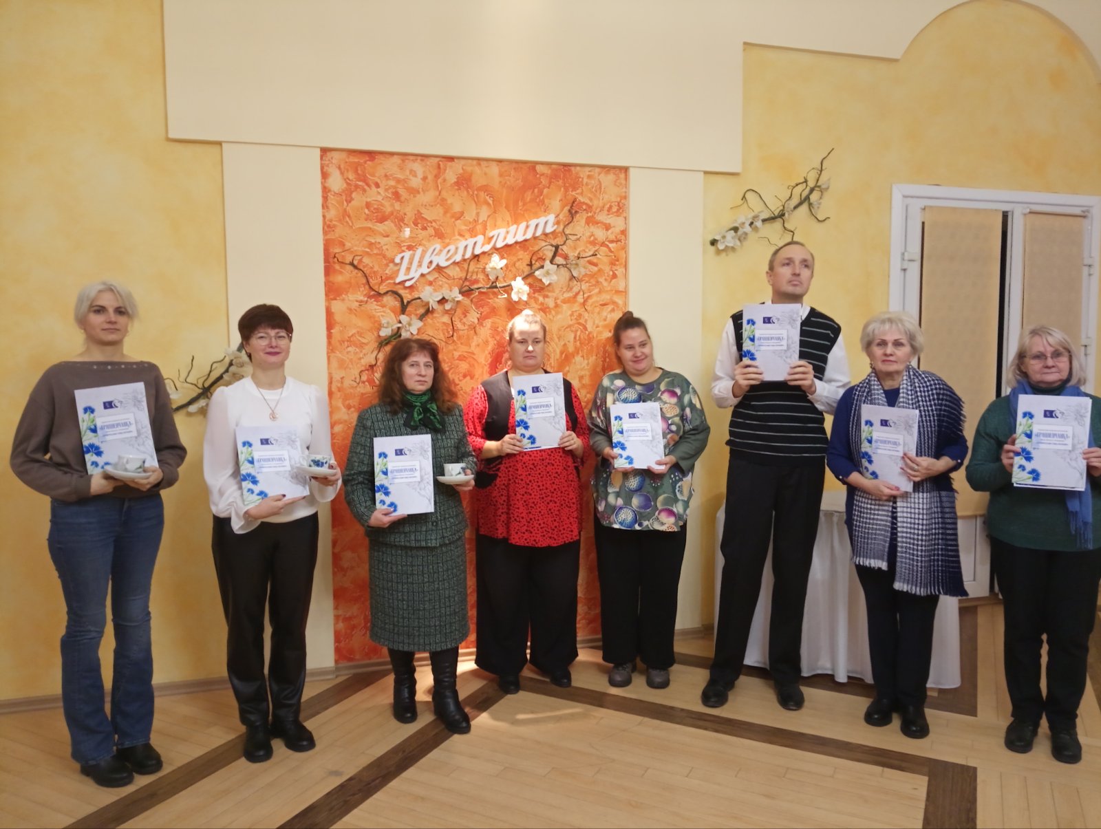 За большим столом, за чашкой ароматного чая с пирогами и конфетами, собралась дружная компания активистов в Доме культуры «Цветлит».