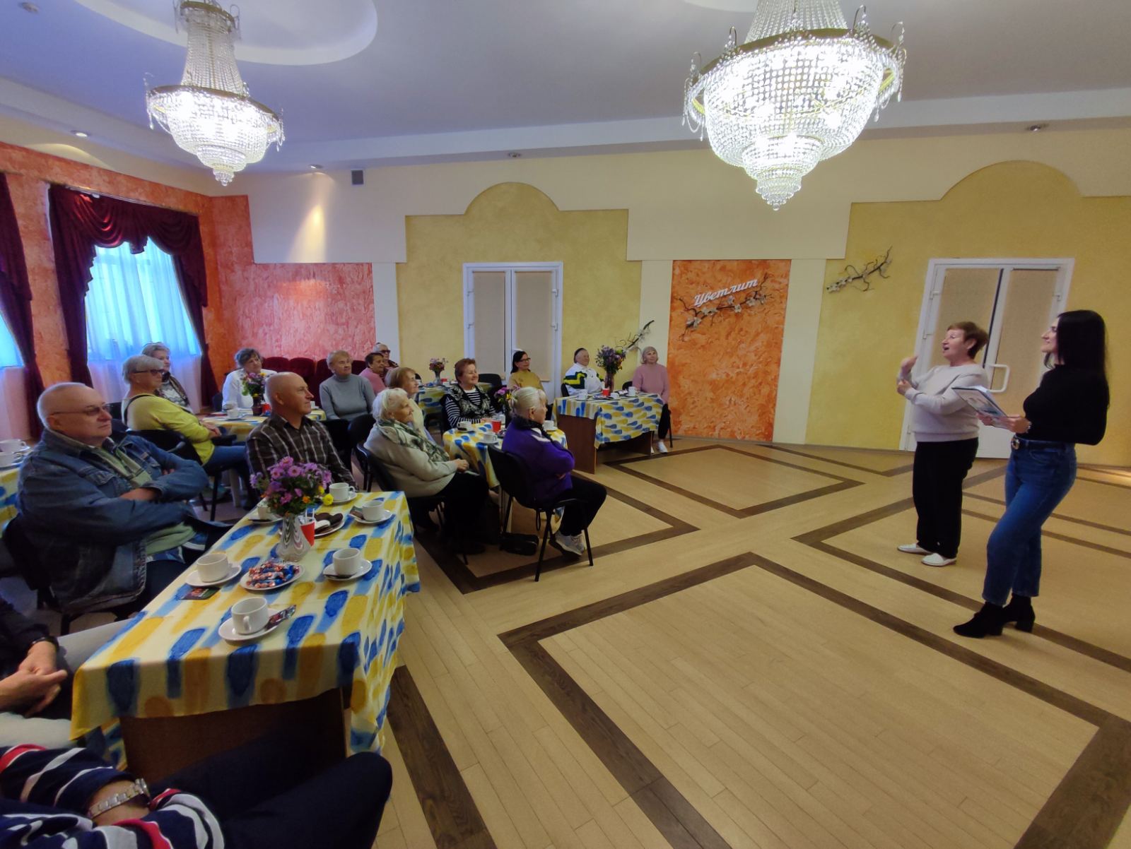 Пенсионеры с удовольствием приняли участие в игровой программе, победители получили призы. Также посмотрели выставку цветочных композиций, подготовленную членами клуба «Дачник». Большинство выставочных композиций были составлены С.М.Дубатовкой, воспитателем общежития УП «Цветлит». Светлана Михайловна-член ОО «БелоГ», творческий человек, лауреат и победитель различных выставок (не только городских, но и республиканских).