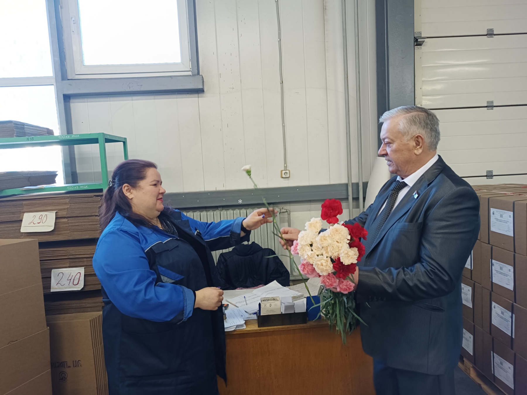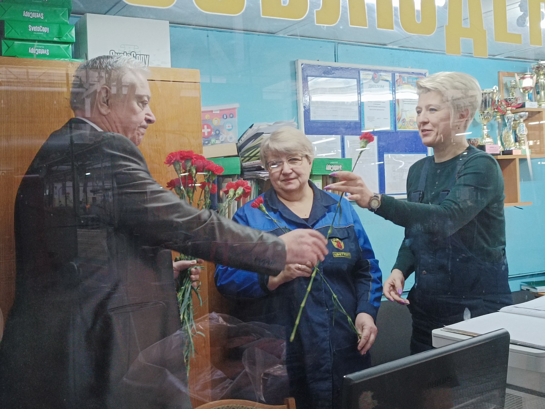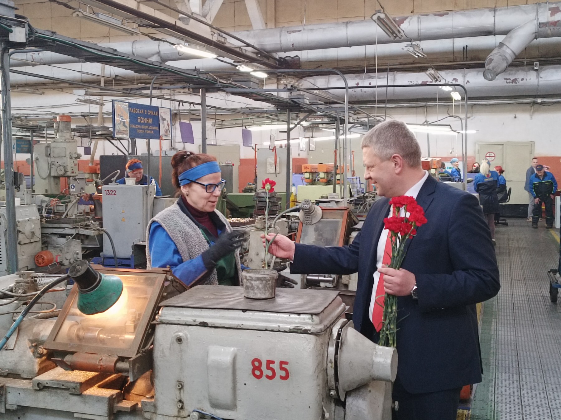 Добрыми пожеланиями, цветами руководство предприятия поздравило женщин-работников с наступающим праздником - 8 Марта.