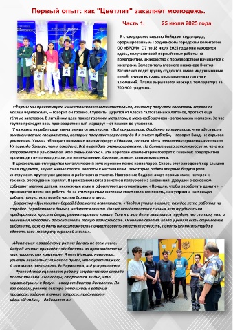 Первый опыт: как "Цветлит" закаляет молодежь.