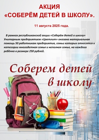 Унитарным предприятием «Цветлит» оказана материальная
