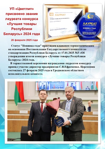 Статус "Новинка года" присужден клапанам термостатическим