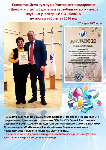 Желаем коллективу Дома культуры Унитарного предприятия «Цветлит»