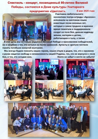 но и скорбим о тех, кто остался на полях сражений. Артисты и зрители почтили