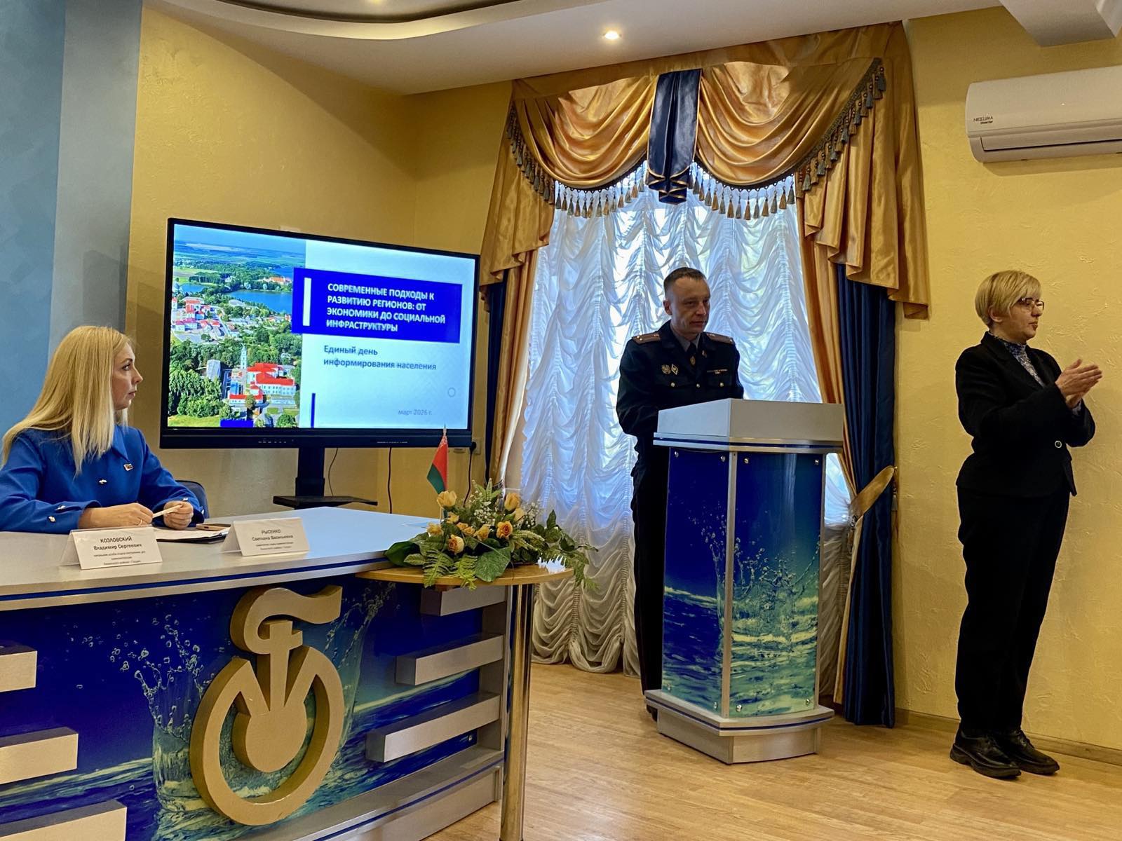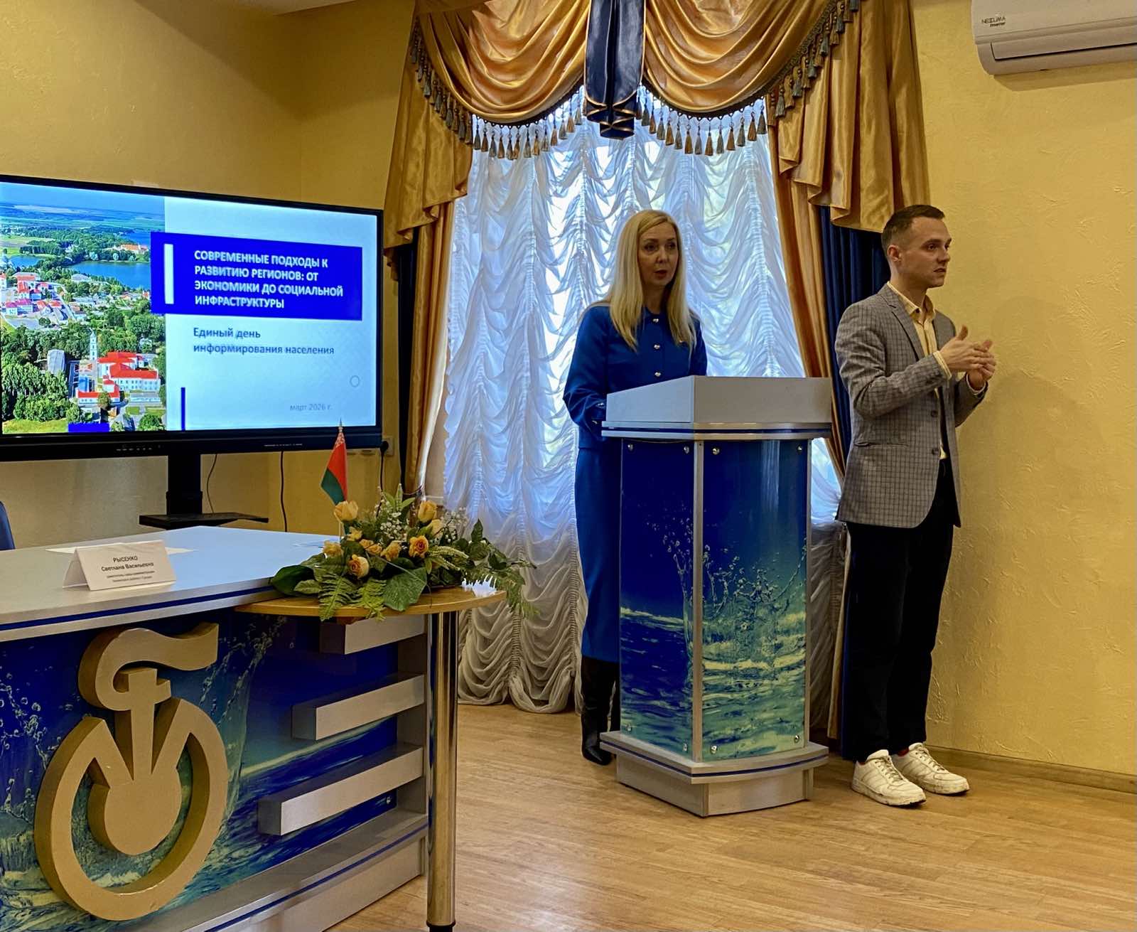 На дне информирования информационно-пропагандистская группа администрации Ленинского района г. Гродно под руководством заместителя главы администрации Светланы Васильевны Рысенко обсудила с коллективом предприятия современные подходы к развитию регионов: от экономики до социальной инфраструктуры.