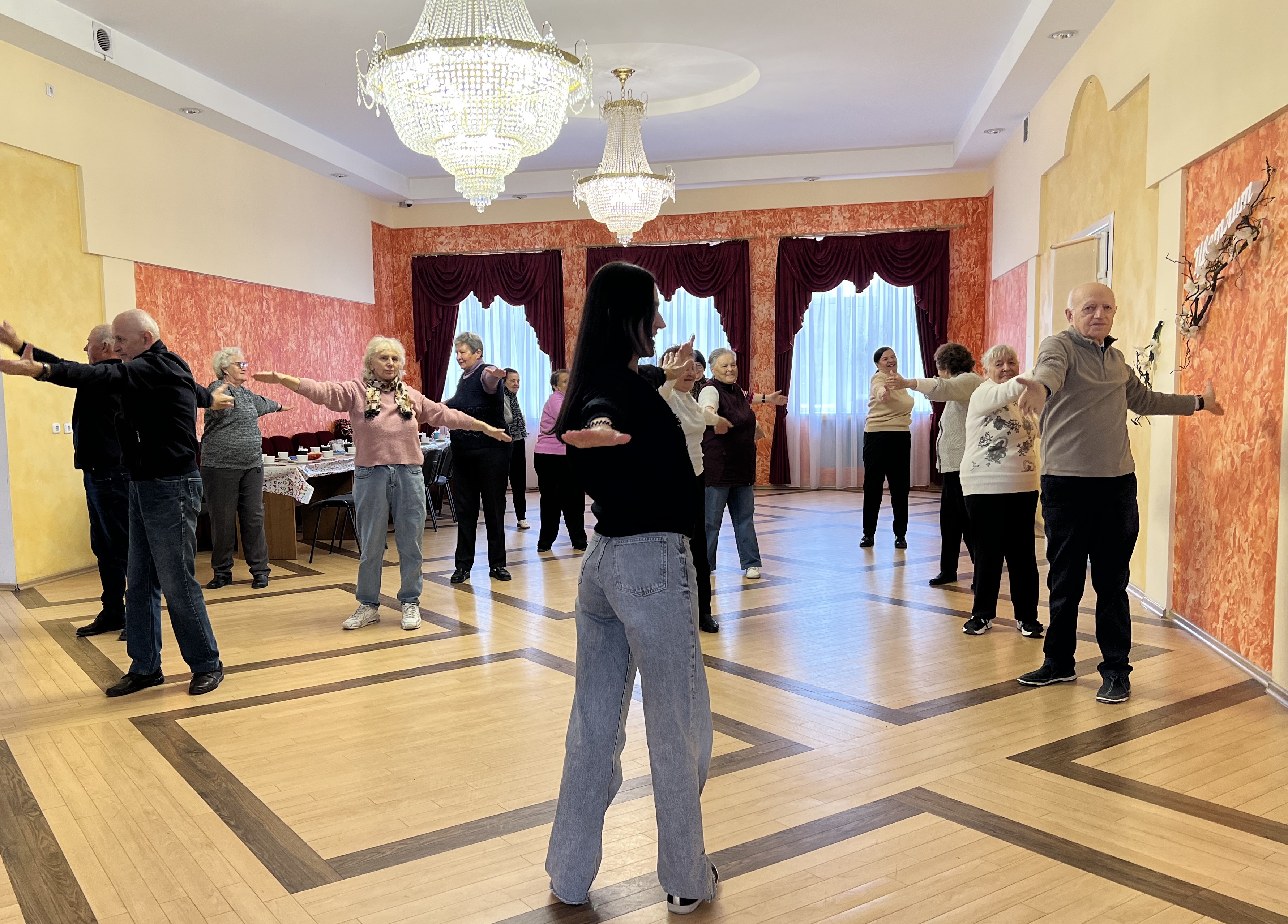 Особую оздоровительную зарядку для собравшихся подготовила и провела хореограф Дома культуры Ропейко И.И. Участники любительского клуба выполняли упражнения, направленные на укрепление мышц, поддержание подвижности суставов и улучшение настроения!
